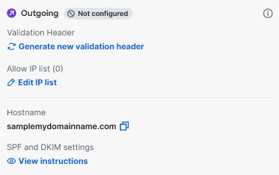 In the Message source (SMTP) Outgoing section, Click Generate new validation header to generate a header. The header will take the form header: value.