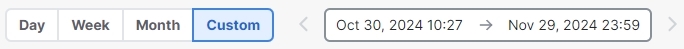 Use the calendar control to show data for a defined time period (most recent Day, Week, or Month), or a Custom time frame within the last 90 days.