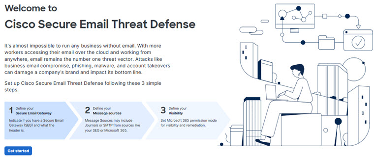 4. You now have access to the Welcome to Cisco Secure Email Threat Defense page. Follow the setup wizard as described in the following sections.